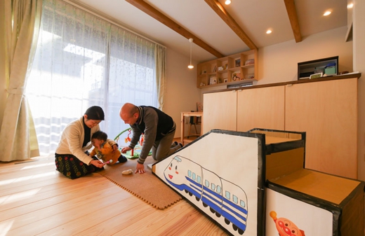 「どの部屋にいても暖かいと感じるのがいいですね。消してもしばらくは暖かいですし。じんわりとした暖かさは、ホットカーペットや温水式の床暖房にはないものだと思います」とAさん。「あと、檜のお風呂が素晴らしいです」と日々の暮らしやすさに加えて、ちょっとした贅沢気分を味わうことができる新居にご満足の様子。「とにかく私たちの要望に誠実に応えながらも、想像を超えた提案をしてくれた竹駒さんに感謝しています」