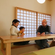 実際に会ってみると「あの人は信頼できる」と両親が言う通り、誠実で、現場での仕事ぶりもプロフェッショナルを感じさせる身のこなしで安心感があったとAさんは言います。奥様の身長にあわせた対面式のキッチンや、掘りごたつのタタミリビング、あとから間仕切りできるようなひとま空間の二階など、一通りの要望を伝えてプランしてもらうと、ぬくもり溢れるフリーハンドで描かれた図面には、想像を超える工夫がいっぱい。乱雑になりがちな玄関の納め方や二階の書斎コーナーなど、「友人が遊びにくるとびっくりする」住まいができあがりました。「なにより、自然素材を提案してくれたのがよかった」とAさん。新建材は極力使わず無垢の床や塗り壁などで仕上げられた室内は、床暖房するCCFシステムと相まってほんのりとした暖かさに包まれていました。