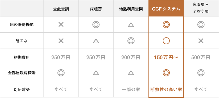 CCFシステムは、機能性のみにこだわった従来のシステムよりも、安全性と快適性、そしてコストを含めて総合的に追求することを目的としている、バランス性に優れた設備です。竹駒工務店では、新築住宅にこちらのシステムをご提案しています。決して過剰では無い、健康的で心地よい室温をご体感下さい。