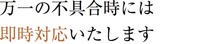 万一の不具合時などは即日対応を基本としています。設計施工、一貫体制ならではの対応力でアフターメンテナンスもご満足いただいております。