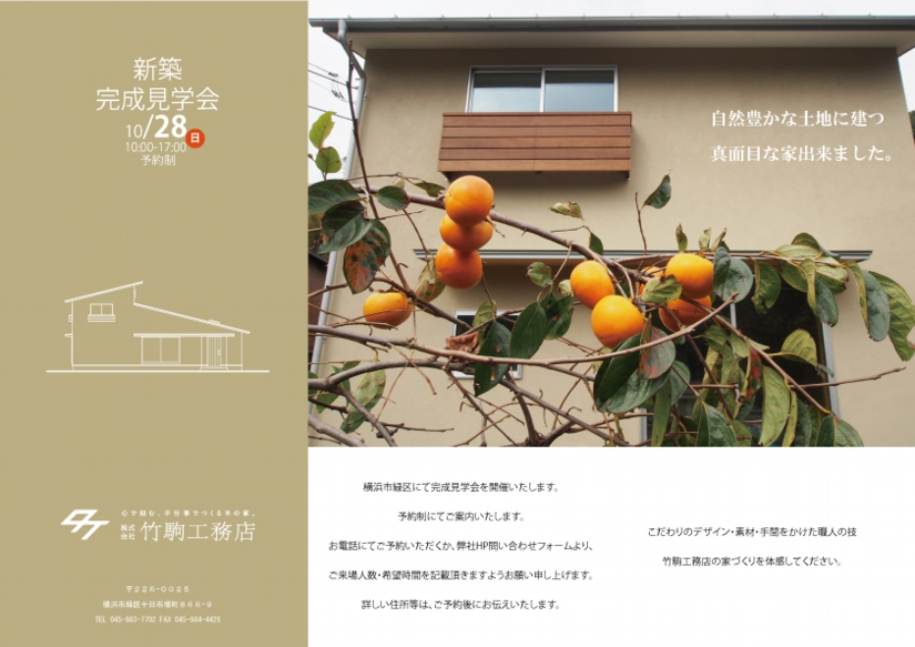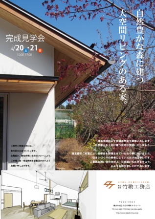 5月2日(土)~3日(日)に横浜市緑区三保町にて完成見学会を開催いたします。