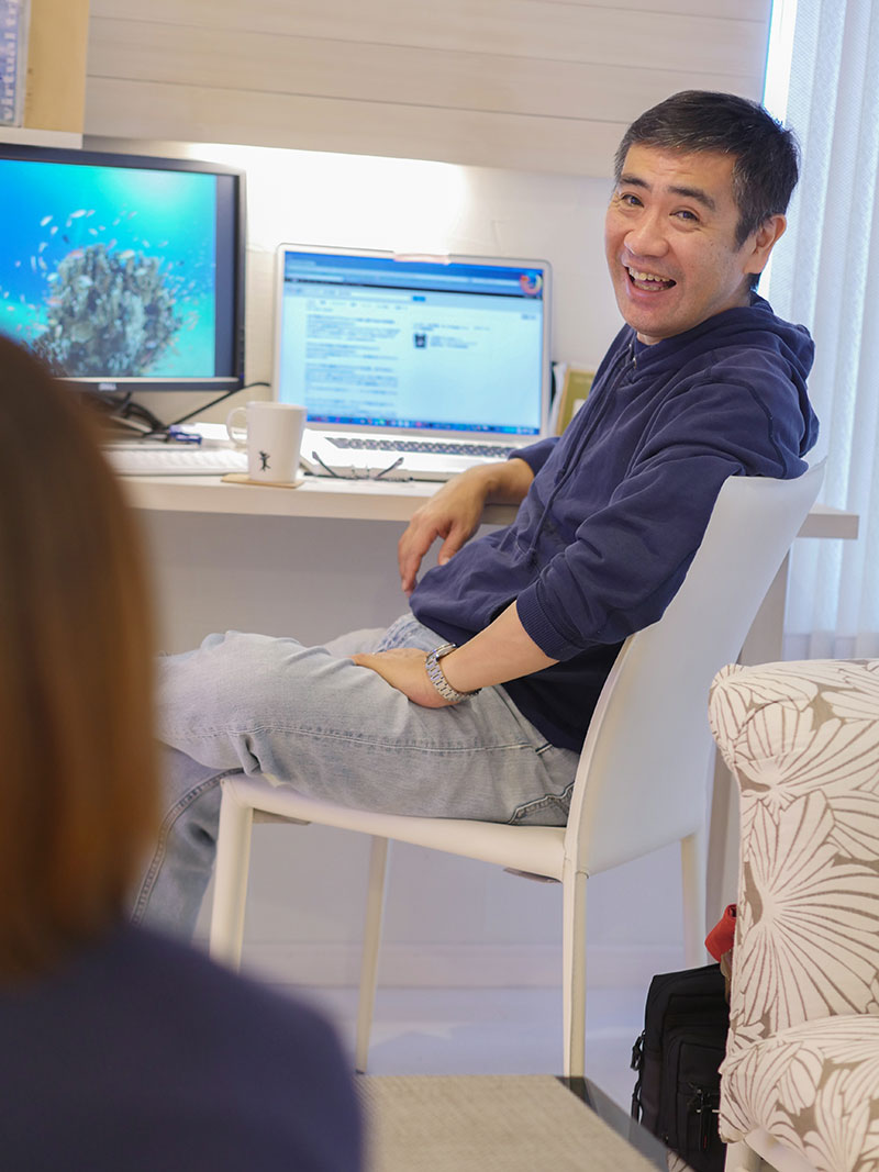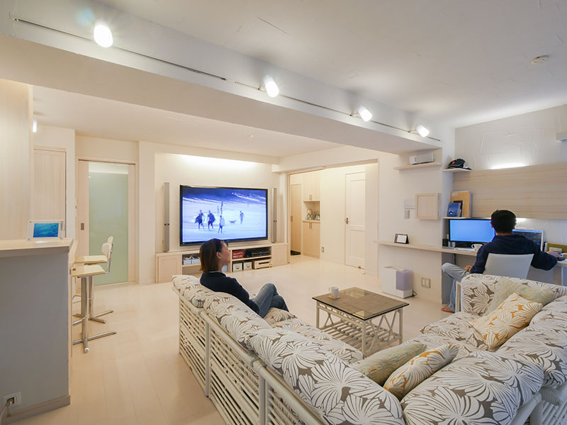 海がお好きで休日にはスキューバダイビングなどを楽しまれる、アクティブなMさんご夫妻。お住まいのマンションで空き部屋となったペントハウスの全面リフォームを竹駒工務店にお任せいただきました。