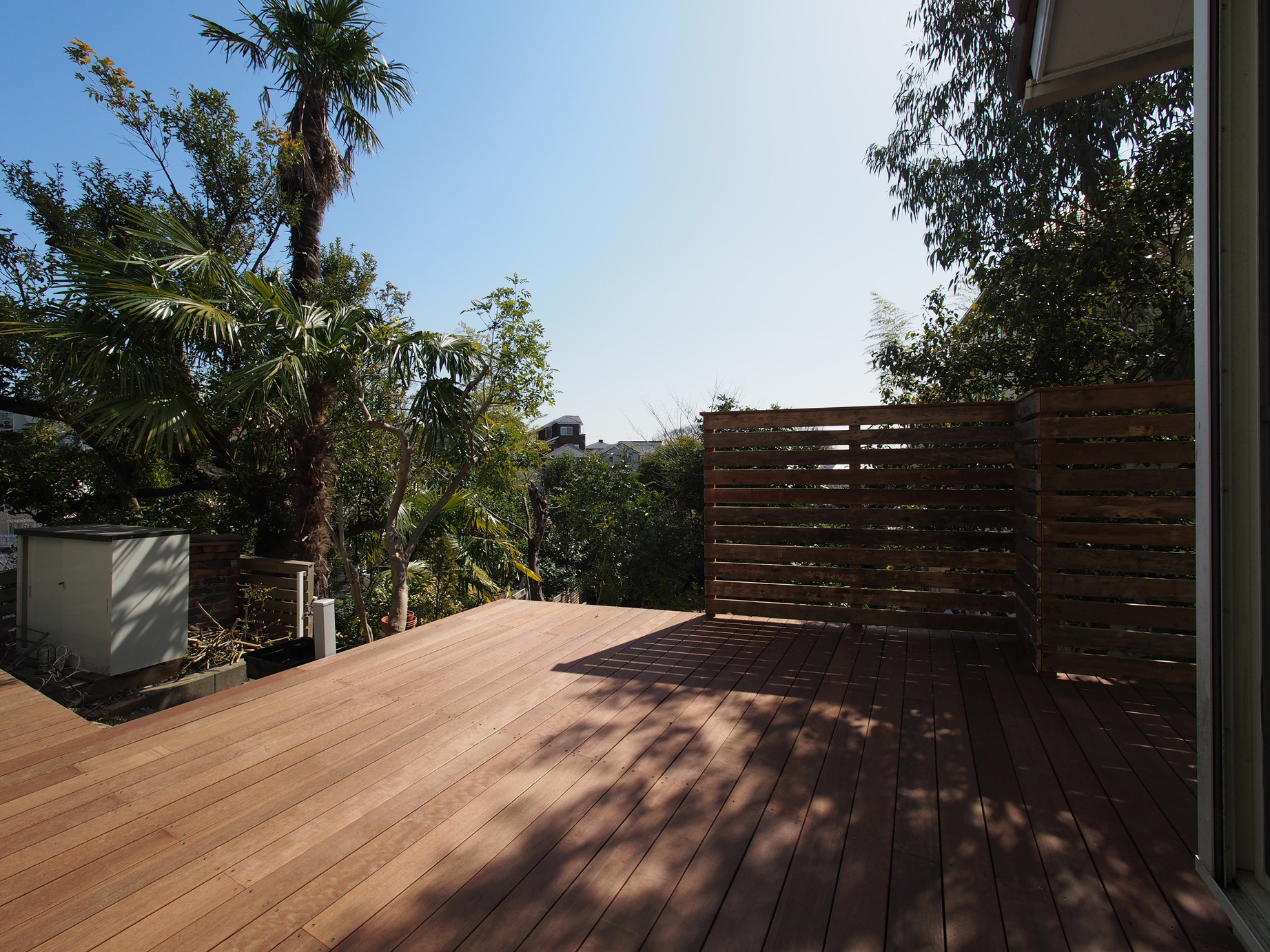 [ 横浜市保土ヶ谷区/ウッドデッキ/2023年施工 ]リビング・浴室掃き出し窓から続くウッドデッキを作りました。